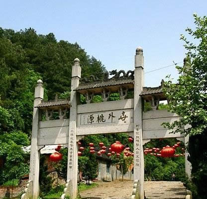 東漢建武二十四年(公元48年),伏特將軍馬援南征五溪"蠻",曾駐軍烏頭村,今桃花源附近尚留有他避暑的"馬援石室"以及他曾設(shè)帳蓬的"營(yíng)盤洲".他的將士曾患瘟疫,當(dāng)?shù)乩习傩斋I(xiàn)"三生湯"(即擂茶)為將士治愈瘟疫,因而桃花源這一帶,留下關(guān)于擂茶的傳說(shuō)和以擂茶待客人的習(xí)俗,相沿至今.就在此后兩年,即東漢建武帝二十六年,從臨沅縣中析置沅南縣,禁屬武陵郡,桃花源屬沅南縣三國(guó),兩晉,南北朝,桃花源均屬武陵郡沅南縣.就在這一歷史階段的晉代(公元前3世紀(jì)中葉至5世紀(jì)初),桃花源這處山水風(fēng)光地便開始有了建筑.明陳洪謨編纂的<嘉靖常德府志>載:桃源觀,晉人建."道觀因建在桃源山上,故名"桃源山"即是桃花之源或者桃樹之源的山,是桃林茂密,桃花繽紛,美不勝收之處.南北朝宋初二年(公元421年),東晉大詩(shī)人陶淵明寫下了千古杰作<桃花源詩(shī)并序>,他用浪漫主義的大手筆構(gòu)造了一個(gè)沒(méi)有紛爭(zhēng).沒(méi)有剝削,沒(méi)有壓迫豐衣足食,怡然自樂(lè)的理想王國(guó)--桃花源,反映了人民群從和平寧?kù)o,幸福美好生活的向往,也體現(xiàn)了人民群眾對(duì)黑暗社會(huì)的抗議.陶淵明從小受儒家"大同世界"的理想,又有道家"小民寡民"的思想的影子.陶淵明繼承了楚文化和屈原的"楚風(fēng)",<桃花源詩(shī)并序>問(wèn)世之后,石破天機(jī),使桃花源聲名大起,現(xiàn)實(shí)中的桃源山,桃源觀,桃花山,桃川宮(即桃源山濱臨之沅江一帶)等名勝景物隨之暇邇聞名.