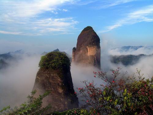 莨山,位于湖南省新寧縣境內(nèi)。南與桂林相連,北與張家界呼應(yīng),是國(guó)內(nèi)最為典型的丹霞地貌風(fēng)景區(qū),是國(guó)家重點(diǎn)風(fēng)景名勝區(qū),又是國(guó)家地質(zhì)公園,總面積108平方公里,轄紫霞峒、 扶夷江、駱駝峰、牛鼻寨、八角寨五大景區(qū),地質(zhì)結(jié)構(gòu)奇特,山、水、林、洞渾然一體。境內(nèi)有形神兼?zhèn)涞膶④娛、惟妙惟肖的駱駝峰、鬼斧神工?天下第一巷"、地造天設(shè)的鯨魚(yú)鬧海、氣勢(shì)磅礴堪稱(chēng)亞洲第一的天生橋、高聳入云而又十分逼真的辣椒峰,這便是嘆為觀止的莨山六絕,這是大自然對(duì)莨山的恩賜,每一絕都舉世無(wú)雙。莨山還生長(zhǎng)繁衍著銀杉、珙桐、華南虎、云豹、靈貓、大鯢等珍稀動(dòng)植物,也為莨山的天然景色增添了無(wú)限靈動(dòng)與生氣。這里出土有10萬(wàn)年前的獼猴頭骨化石,有4500年前的新石器文化遺址,有清化農(nóng)民起義的寨堡,有晚清重臣劉坤一、劉長(zhǎng)佑、江忠源的宗祠、墓葬,有異彩紛呈的民族風(fēng)情,有膾炙人口的華采詩(shī)賦,明代縣人陳永猷留下了"夫夷(新寧古稱(chēng))勝景天成就,攝杖歸來(lái)入夢(mèng)頻"的美譽(yù),著名詩(shī)人艾青留下了"桂林山水甲天下,莨山山水賽桂林"的喟嘆。
