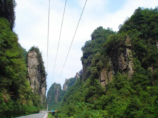 百丈峽圖片 百丈峽是武陵源風(fēng)景名勝區(qū)通往張家界市的公路貫通整個(gè)峽谷,因有堵高近百丈的石壁,直插云霄,不敢仰視,故而得名。據(jù)《慈利縣志》載,索溪峪右得百丈峽,峽長三十公里……又相傳向王天子起義軍與官兵在此先后博殺一百仗,依此又名百仗峽。明代九永兵備胡桂芳,一生好游歷山川,來到百丈峽后題寫了一首七言詩:“峽高百丈洞云深,要識(shí)桃源此處尋;戎旅徐行風(fēng)雪緊,誰將興盡類山蔭!笨逃趰{內(nèi)道旁石壁上。