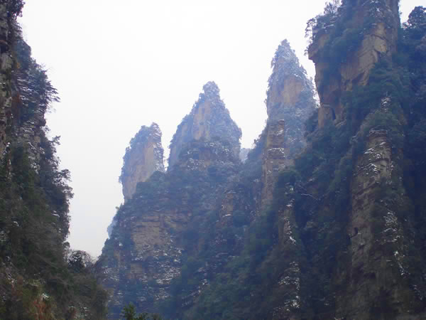 百丈峽圖片 凡到過索溪峪的人,都知道黃龍洞和寶峰湖,卻不一定知道那里還有個(gè)百丈峽。一個(gè)十分野氣的地方。是的 一級(jí)級(jí)不規(guī)則的坡田,傍著不被人注意的小山。山腳下蜿蜒一條溪流,幾乎看不到水。只憑一些雜亂的卵石才能辨認(rèn)出來。那溪流的出山之處,便是百丈峽口。幾條既是田埂又兼小路的窄徑,將我引到峽口。啊!一下子眼界大開,驚喜得叫了一聲。好偉麗的山,好嵯峨的峰!縱目觀去,不遠(yuǎn)的峽正中,一峰拔地豎起,似一條巨大的桿魚,頭在半空,尾藏溪中,蔚為壯觀,一下子便吸引了我。