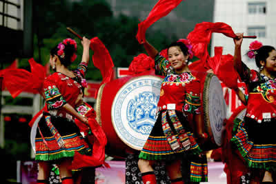 苗族花鼓 苗族花鼓源于唐代,至今已有一千多年的歷史。為什么叫花鼓?因無文字可考,據(jù)老年的花鼓師傅說,幼年他們跟上一輩人學鼓時,鼓上都貼有各種鮮艷的花瓣,擊鼓,不準擊落花瓣,這便要上乘的功夫。也許這就是花鼓的由來。