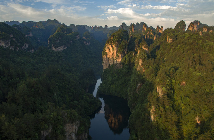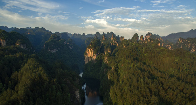 現(xiàn)在位置:首頁 -> 西部國(guó)旅->旅游資訊 -> 航拍晨曦中的武陵源百丈峽 宛如人間仙境