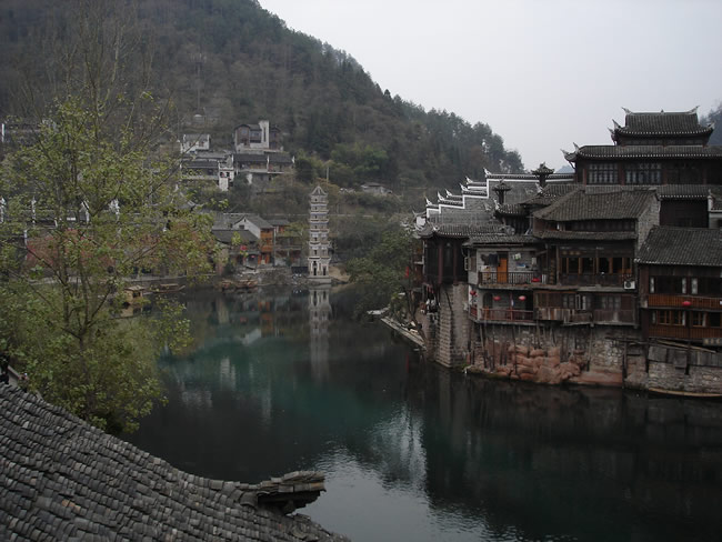 【鳳凰古城位于沱江之畔、群山環(huán)抱、關(guān)隘雄奇、碧綠的沱江依著城墻緩緩流淌,疊翠的南華山麓倒映江中,江中漁舟游船數(shù)點,山間暮鼓晨鐘兼鳴,懸崖上的吊腳樓輕煙裊裊,碼頭邊的浣紗姑笑聲朗朗,兩岸已有數(shù)百年歷史的吊腳樓更是別有一番風(fēng)味;順?biāo)麓┻^虹橋一幅江南水鄉(xiāng)的畫面便展現(xiàn)于眼前--萬壽宮、萬名塔、奪翠樓……一種遠(yuǎn)離塵世的感覺悠然而生;鳳凰--猶如“一幅濃墨淺彩的中國山水畫”】,入住酒店。