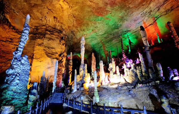 上 午:早餐后旅游車前往地下明珠——【黃龍洞景區(qū)】(門票100元/人已含,游覽時約2.5小時):黃龍洞享有“世界溶洞全能冠軍”之美譽(yù),2005年被評選為“中國最美的旅游溶洞”,洞中燈火闌珊、石筍林立,猶如一株株古木錯節(jié)盤根、洞中有洞、洞中有河、無奇不有,真乃名副其實的“地下魔宮”,洞中還有投保一億元的石筍定海神針、響水河、龍王聚會廳、天仙水、天柱街等著名景點。